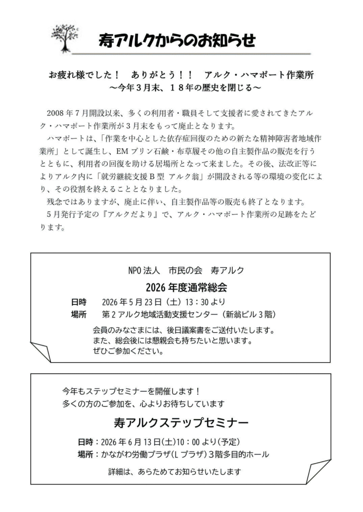 アルク冬のバザー開催に向けてのお願い